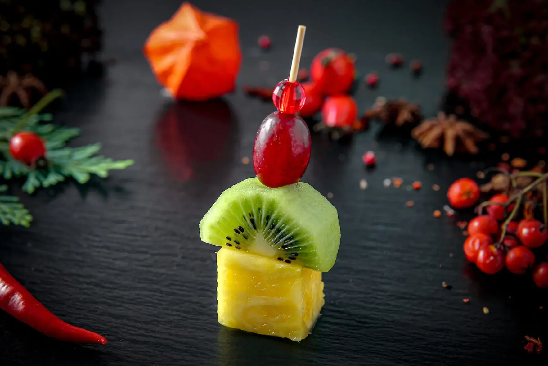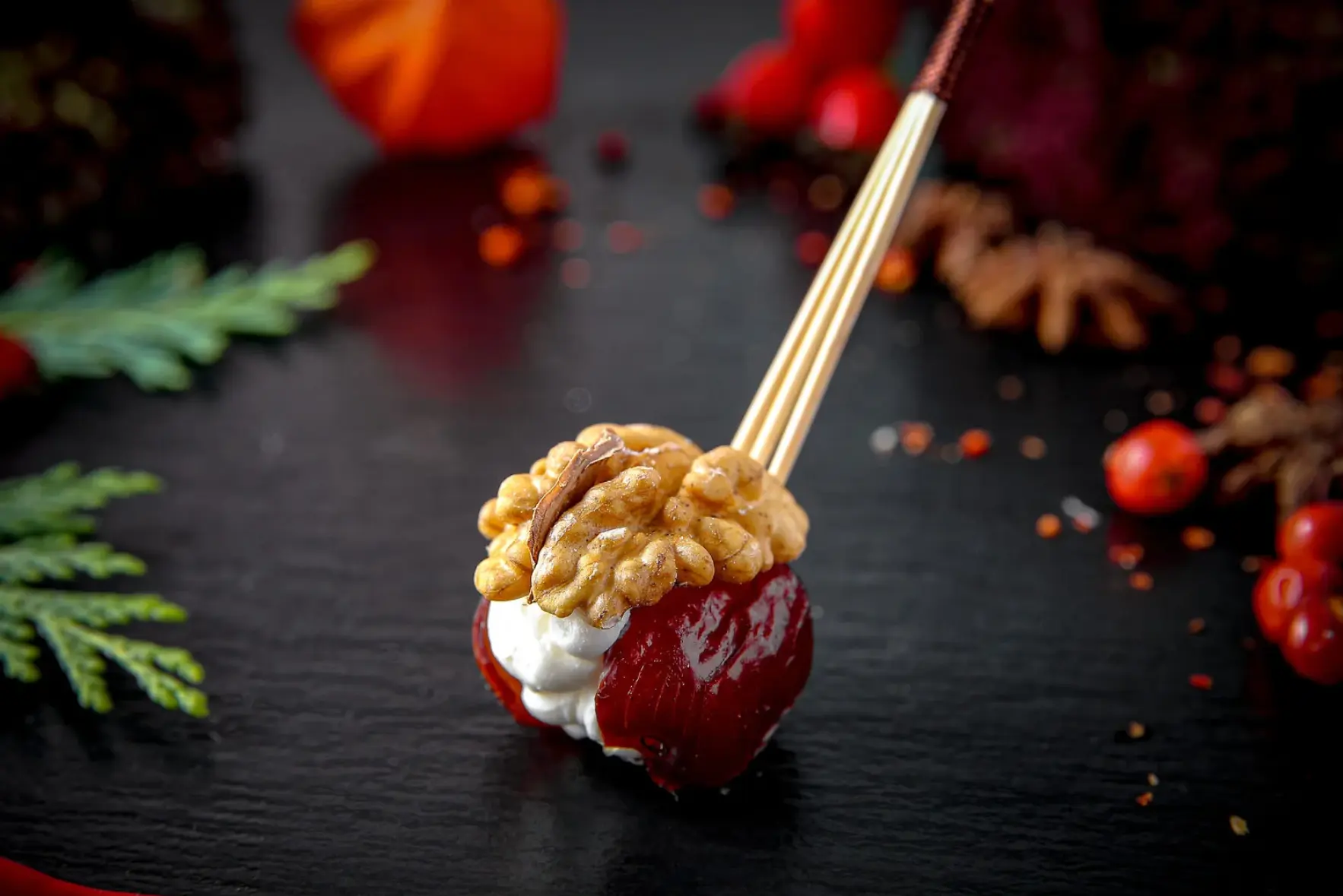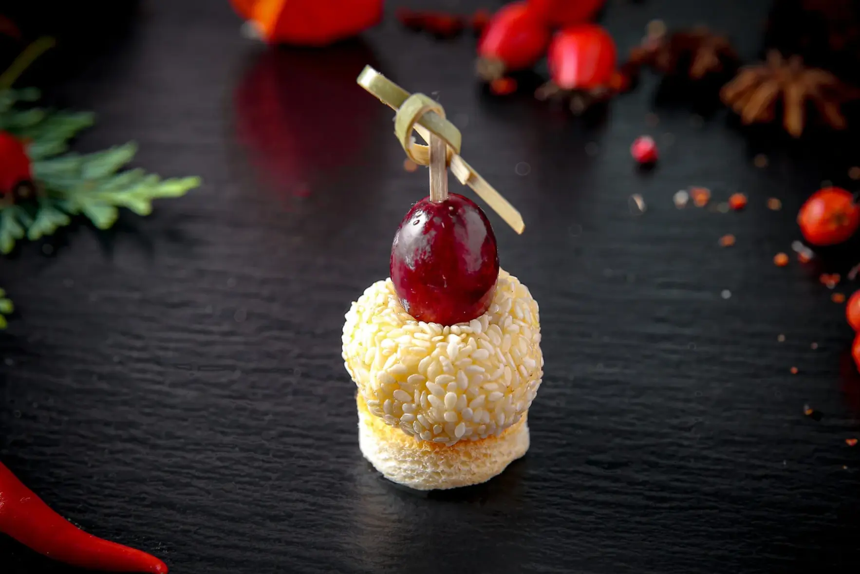 Канапе с грушей, Брынзой и голубикой