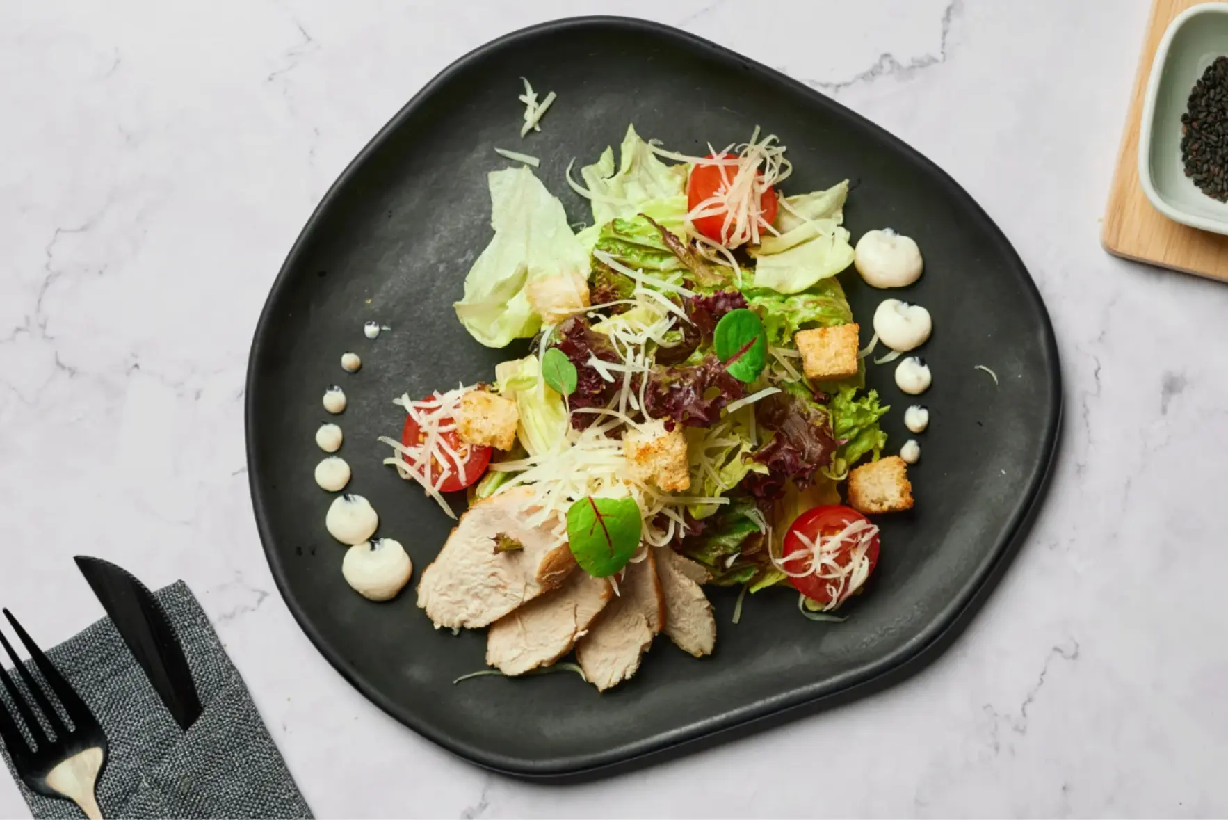 Салат с запеченой курочкой, овощами и домашним майонезом