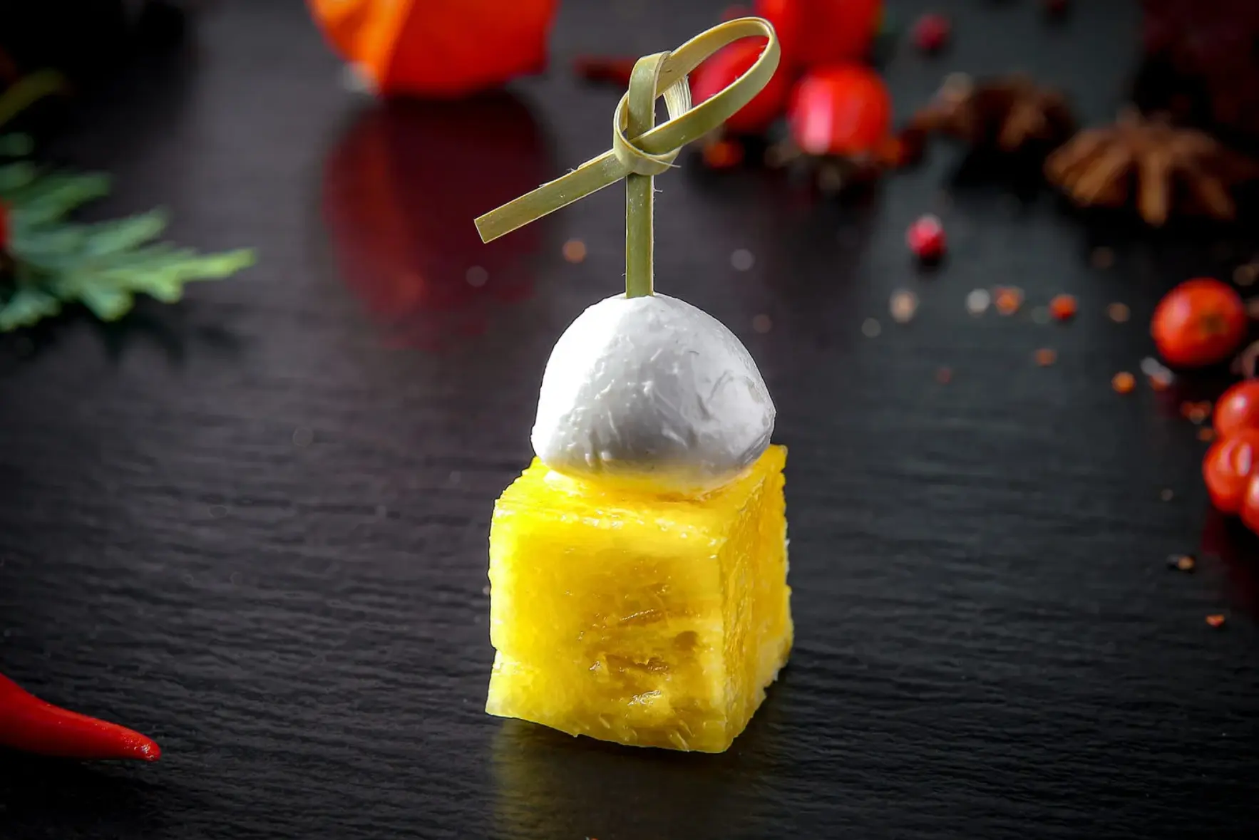 Канапе с сыром Эдам и вяленым томатом